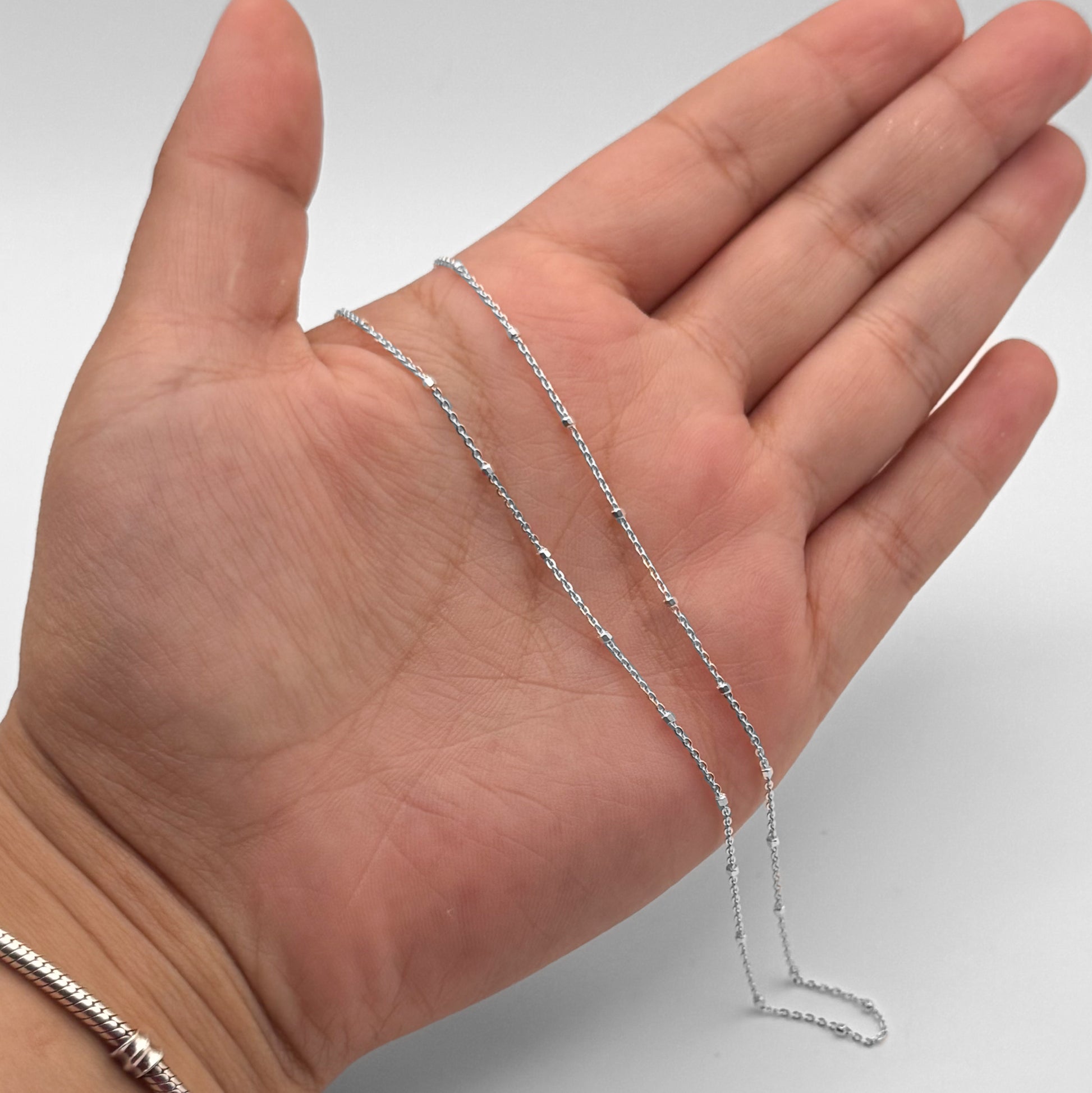 Cadena en plata Italiana 925 en tejido Olimpico delgado con balines pequeños.