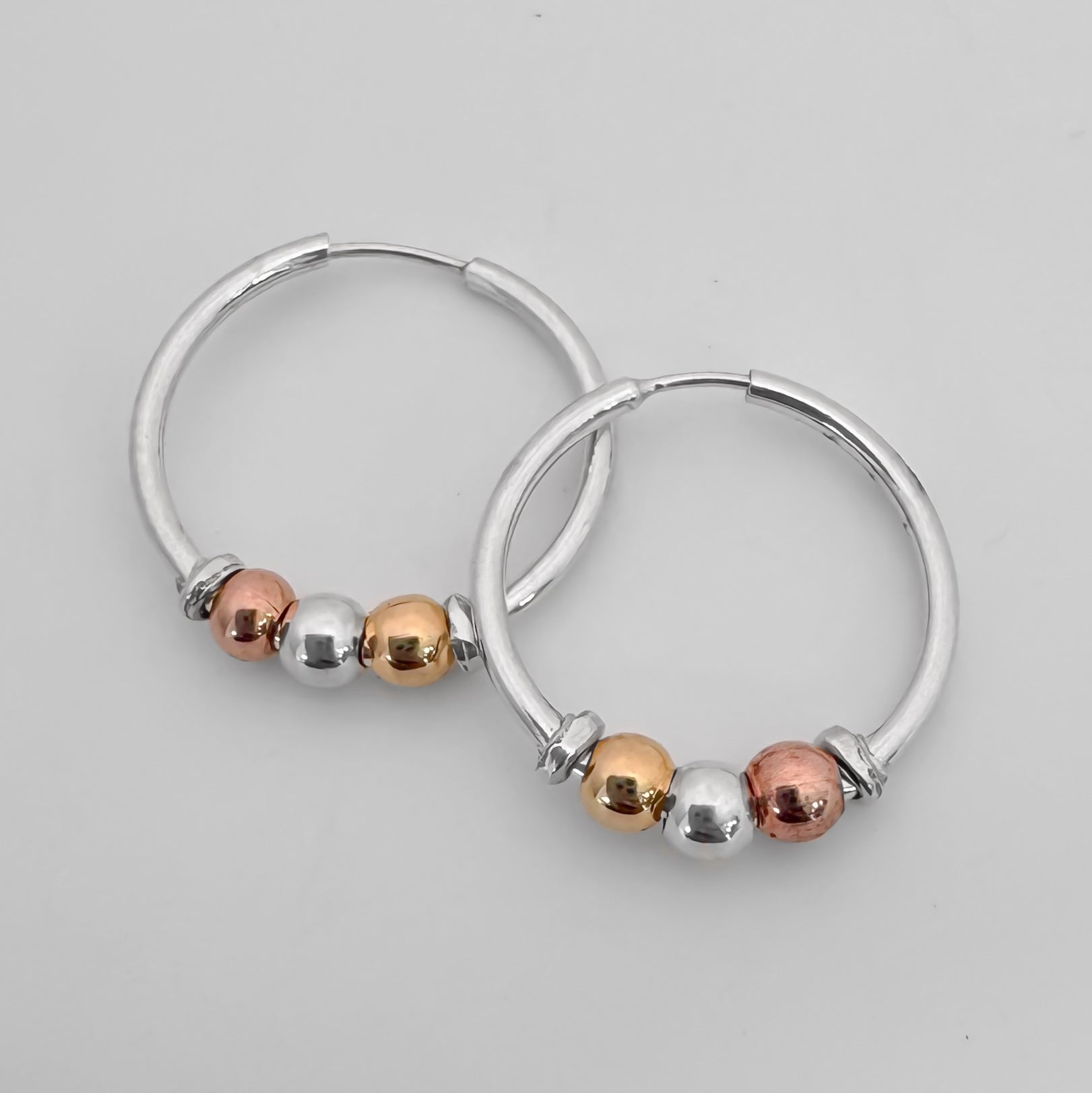Candongas en Plata 925 con balines, los balines tienen un baño en oro de 18k de oro amarillo y oro rosado.