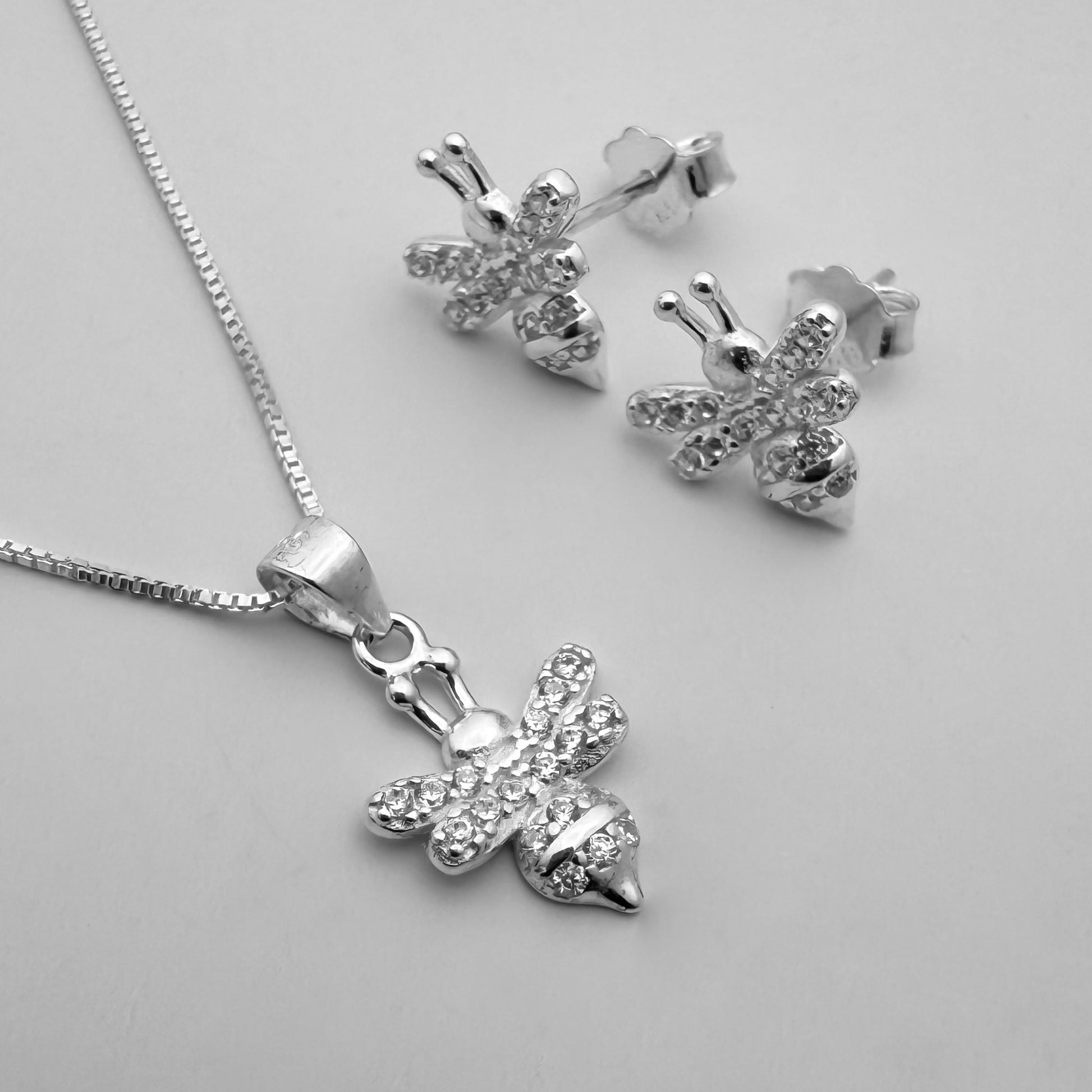 Juego en Plata 925 con forma de abejas y zircones blancos.