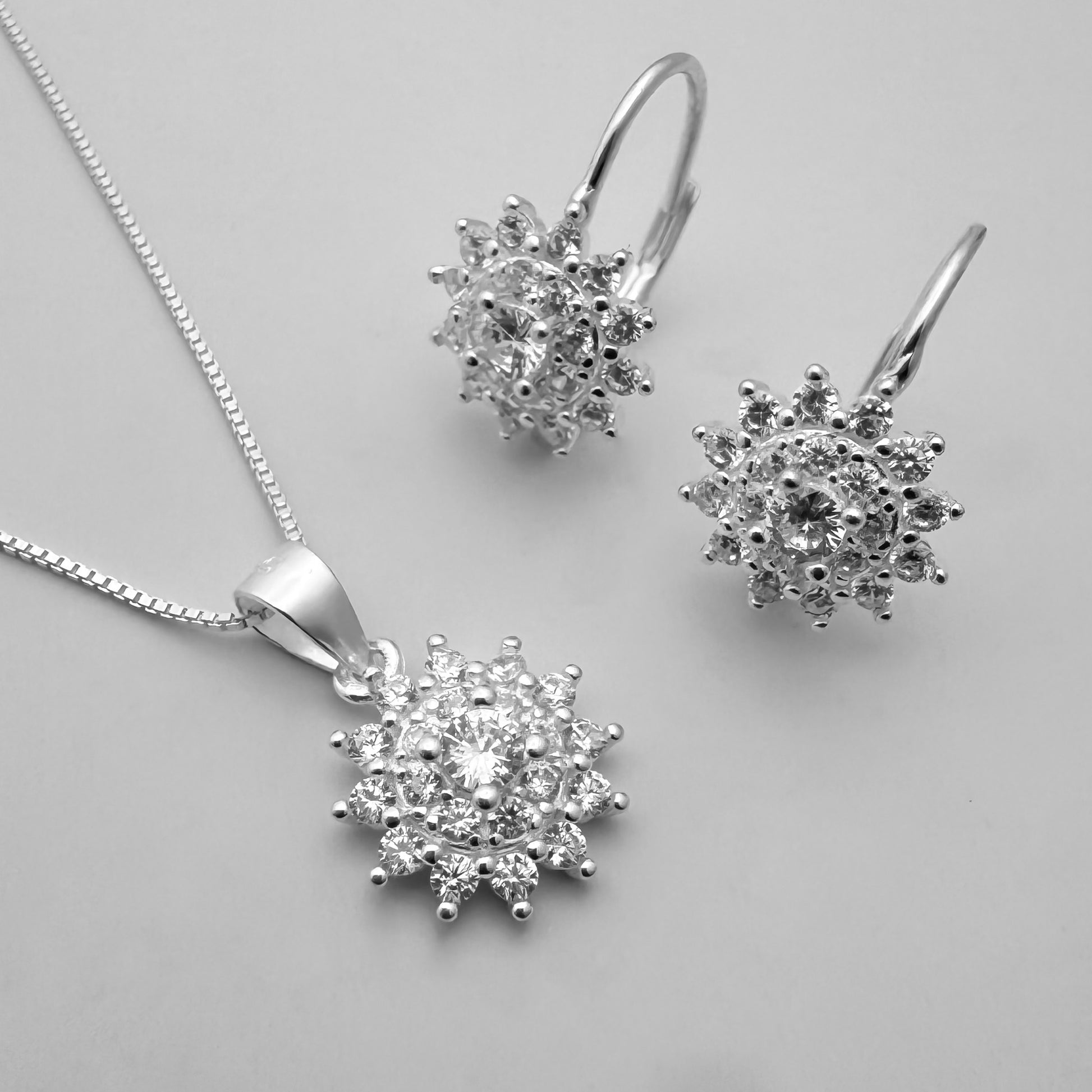 Juego en Plata 925 en forma de soles salientes y zircones blancos