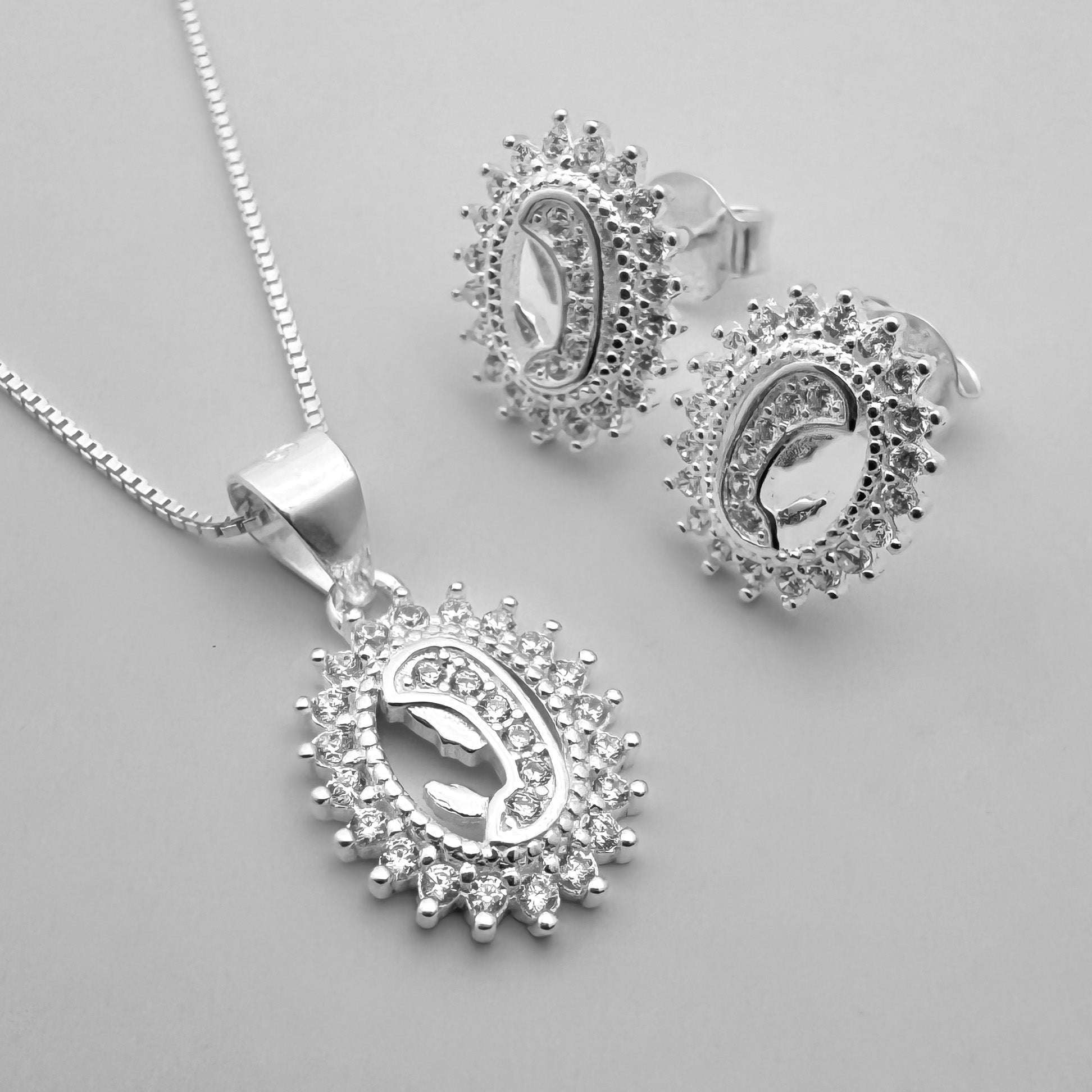 Juego en Plata 925 en fora de virrgen maría y zircones blancos.
