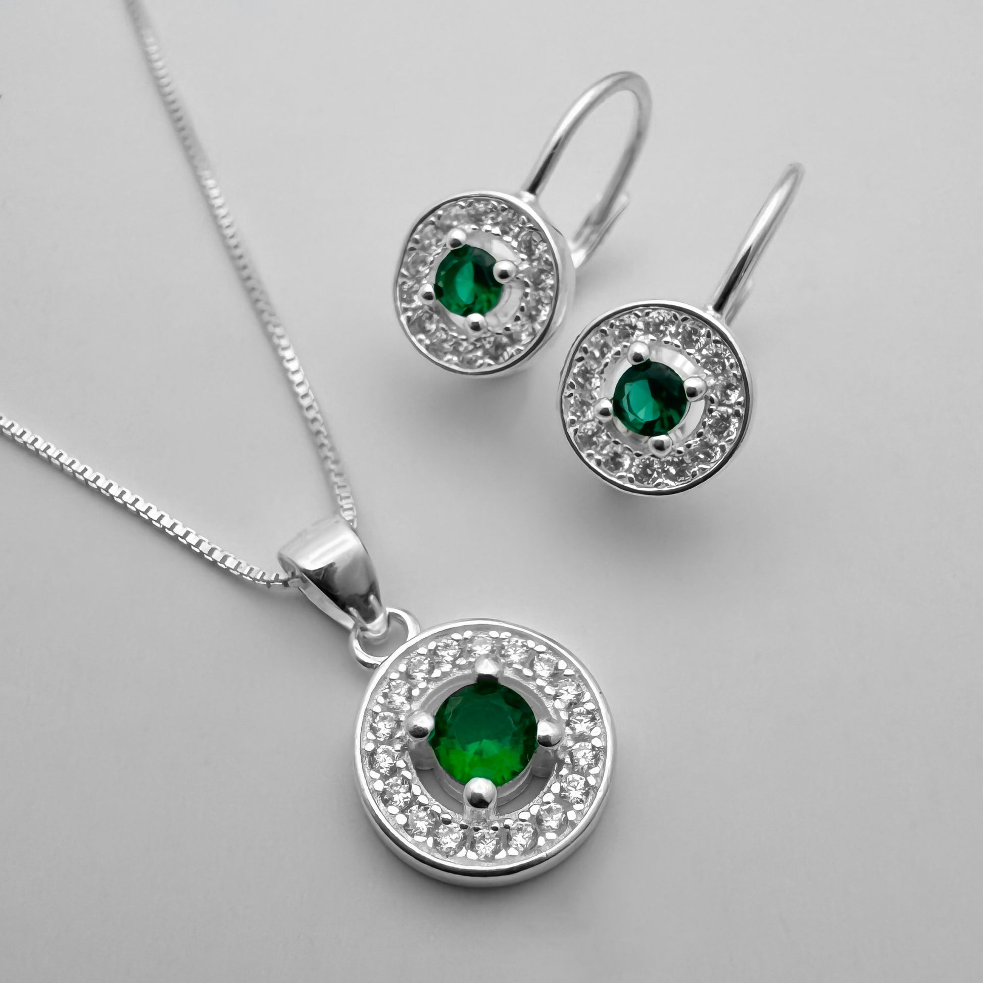 Juego en Plata 925 estilo marquesa con Zircones Suizos en color verde.
