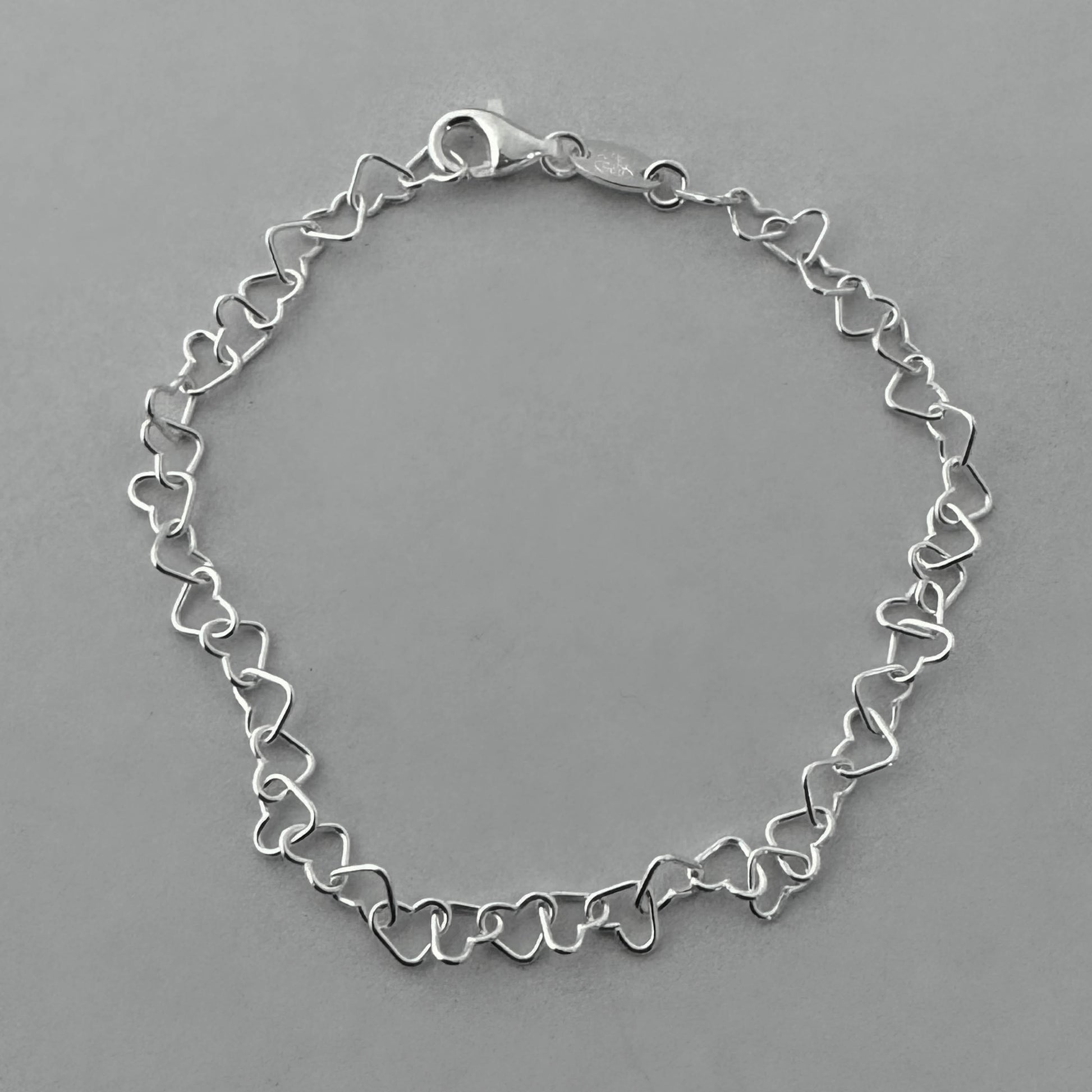 Pulsera en Plata 925 en tejido de corazones medianos.
