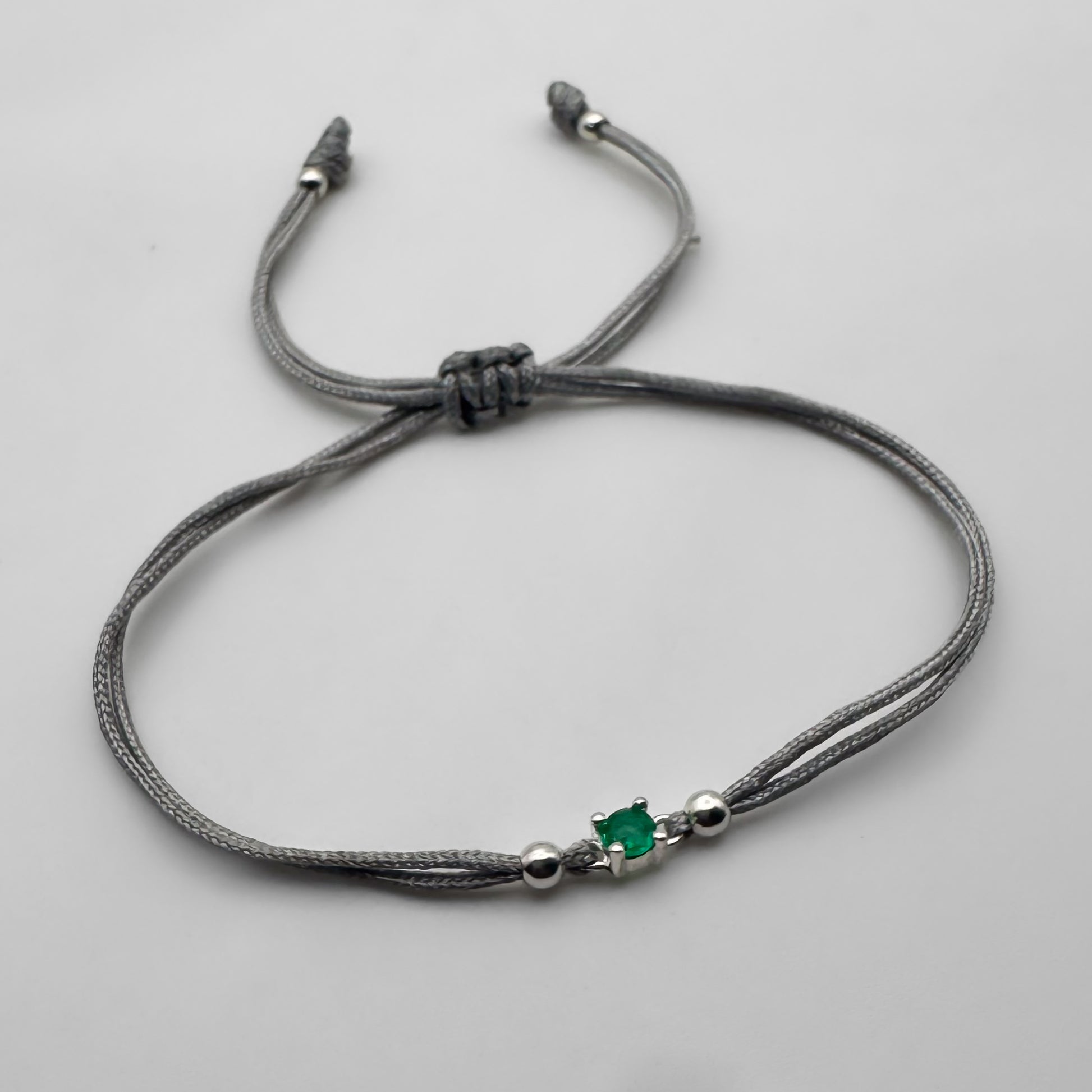 Pulsera tejida en hilo chino y Plata 925 con Esmeralda Natural.