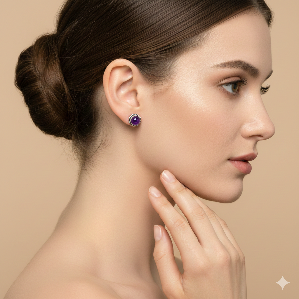 Encuentra equilibrio y sofisticación con estos topos de 8mm, protagonizados por una amatista natural de tono intenso y corte pulido. Diseñados para la mujer que busca conectar con su sabiduría interior, este set aporta un toque de elegancia serena y distintiva a tu estilo diario, convirtiéndose en tu amuleto personal de tranquilidad.